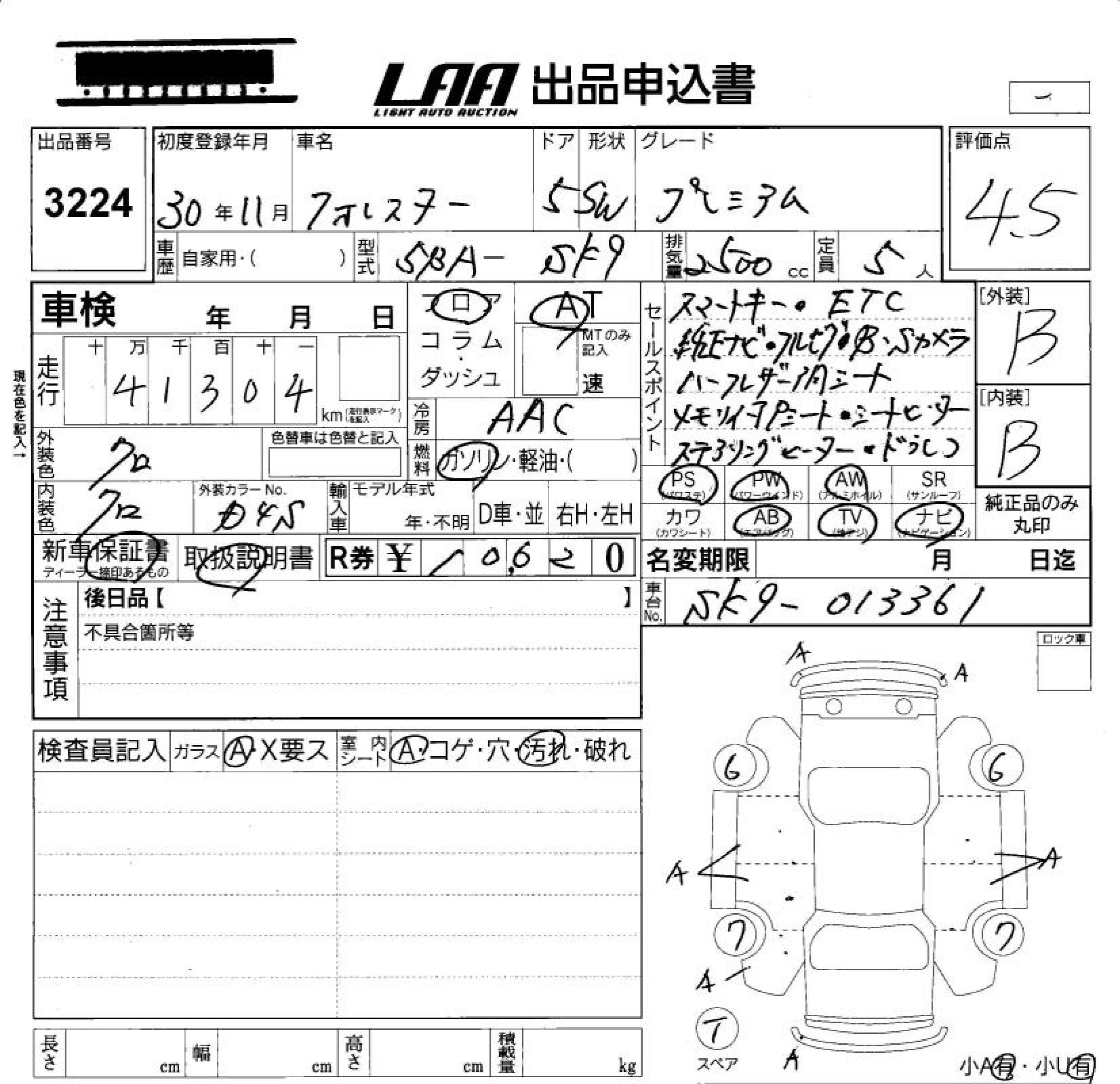SUBARU FORESTER PREMIUM - лот 3224