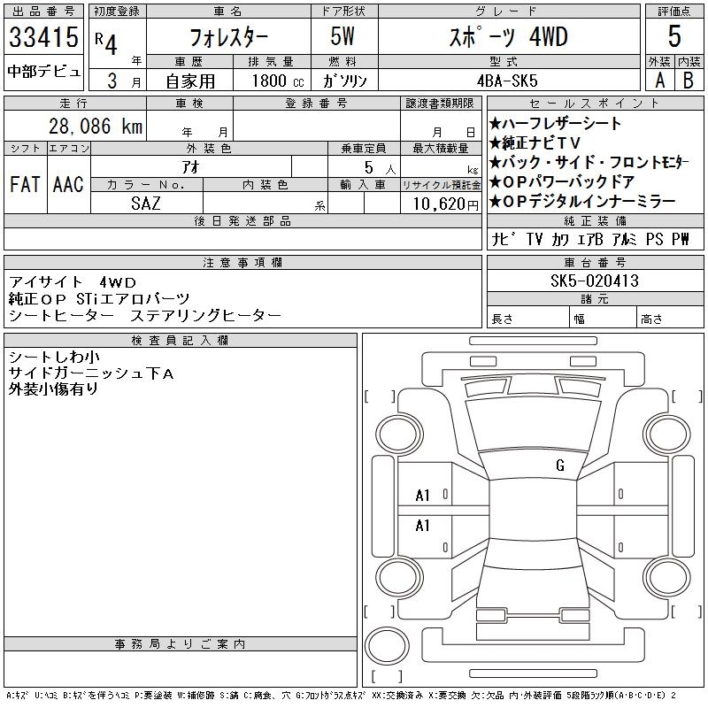 SUBARU FORESTER SPORT 4WD - лот 33415