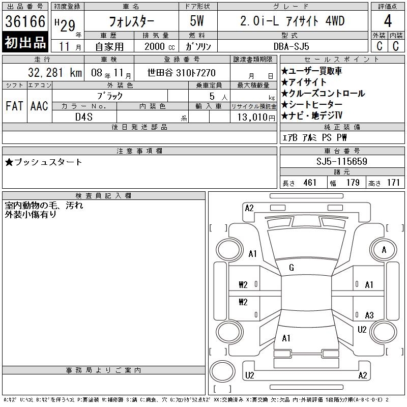 SUBARU FORESTER 2.0I-L EYESIGHT 4WD - лот 36166