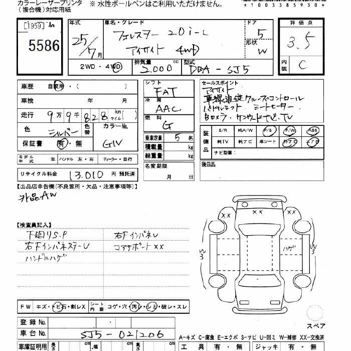 SUBARU FORESTER 4WD 2.0i-L EyeSight - лот 5586
