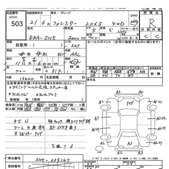 SUBARU FORESTER 4WD 2.0XS - лот 503