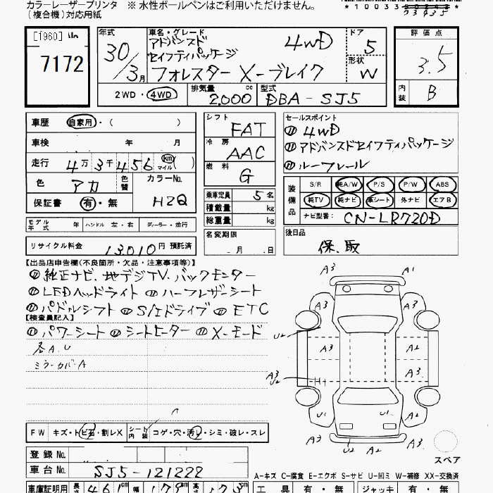 SUBARU FORESTER 4WD X Break advance . safety PKG - лот 7172