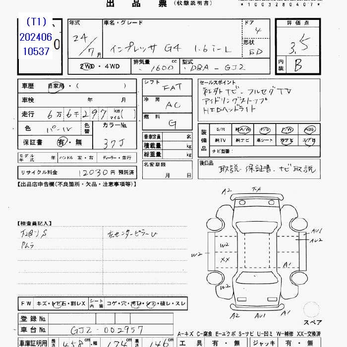 SUBARU IMPREZA G4 - лот 36685