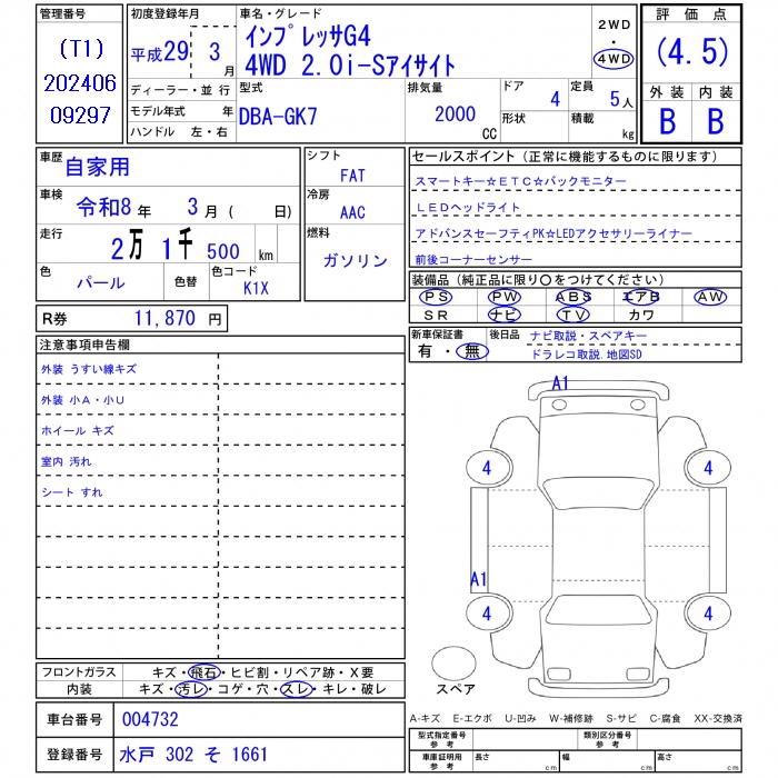 SUBARU IMPREZA G4 - лот 35560