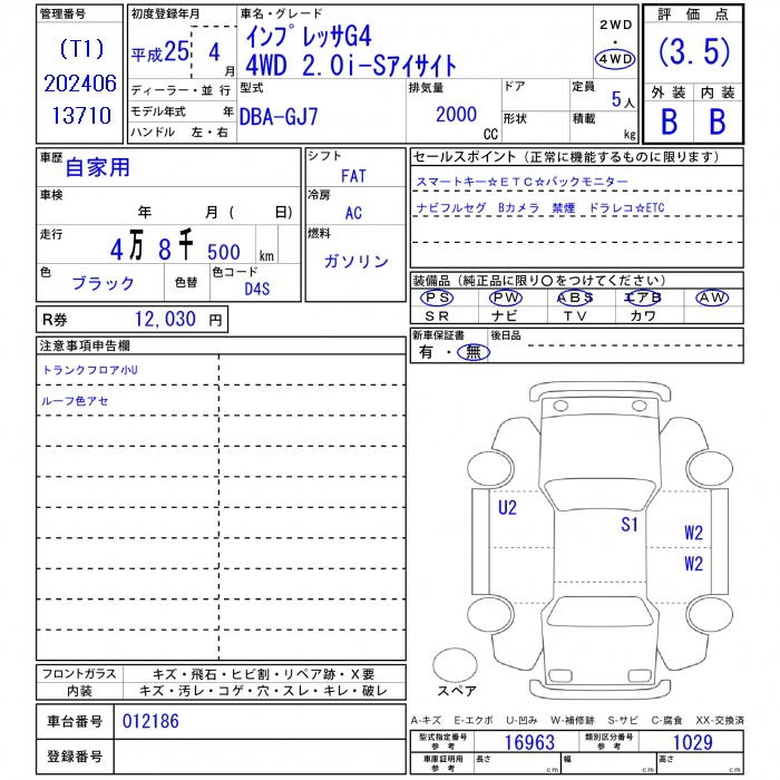 SUBARU IMPREZA G4 - лот 39863