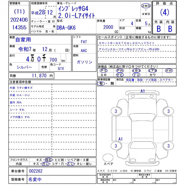 SUBARU IMPREZA G4 - лот 40514