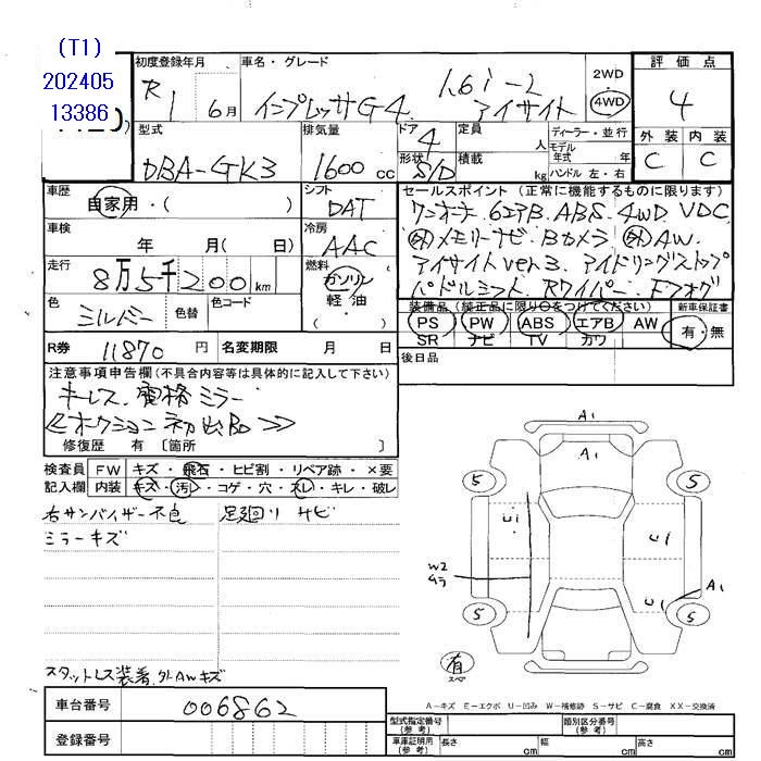 SUBARU IMPREZA G4 - лот 26058
