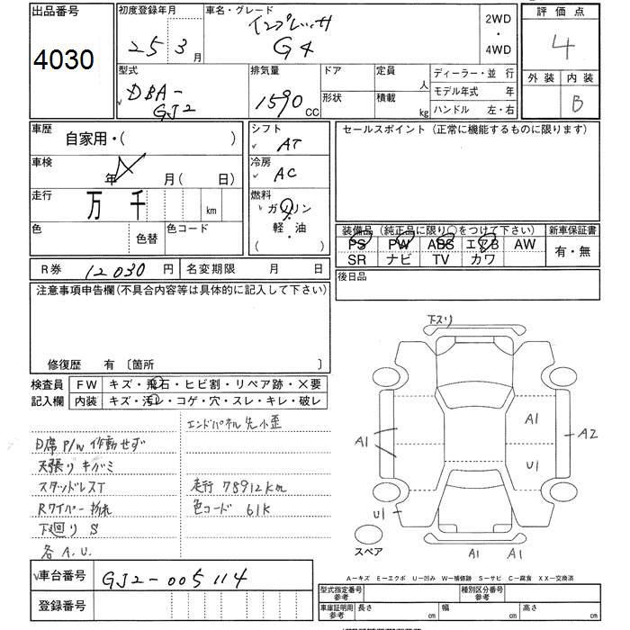 SUBARU IMPREZA G4 - лот 4030