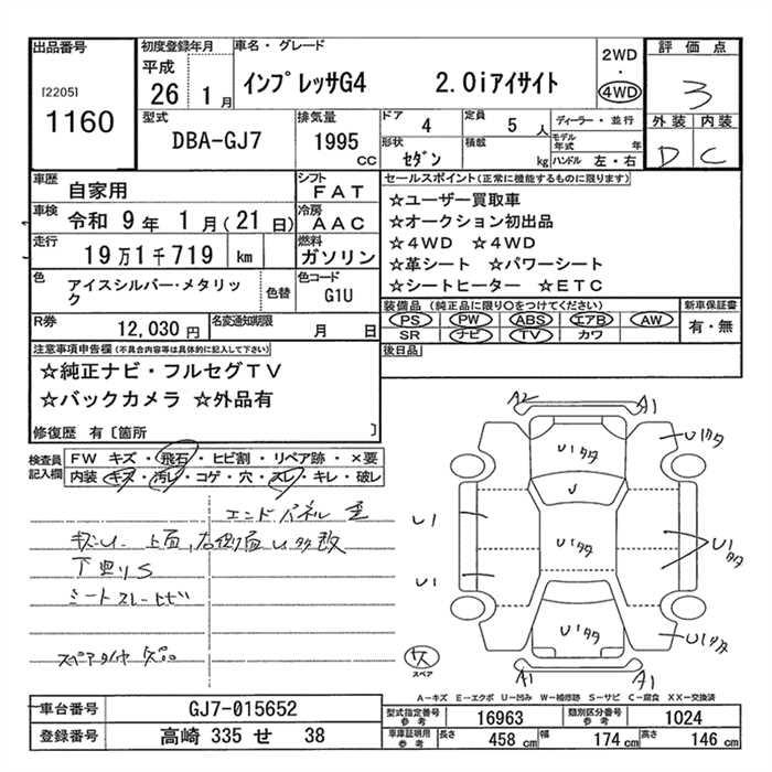 SUBARU IMPREZA G4 - лот 1160