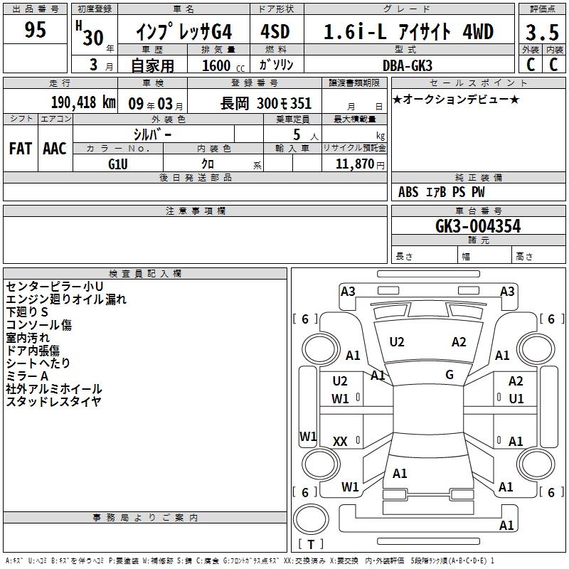 SUBARU IMPREZA G4 - лот 95