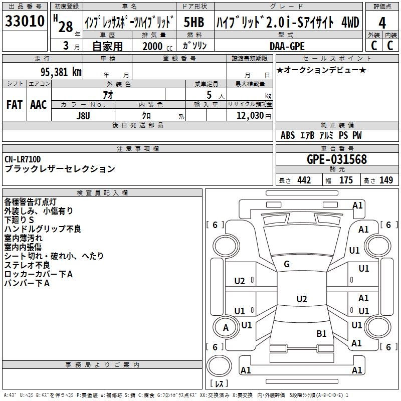 Все аукционы SUBARU IMPREZA SPORT HYBRID