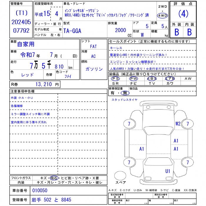 SUBARU IMPREZA SPORT WAGON - лот 23448