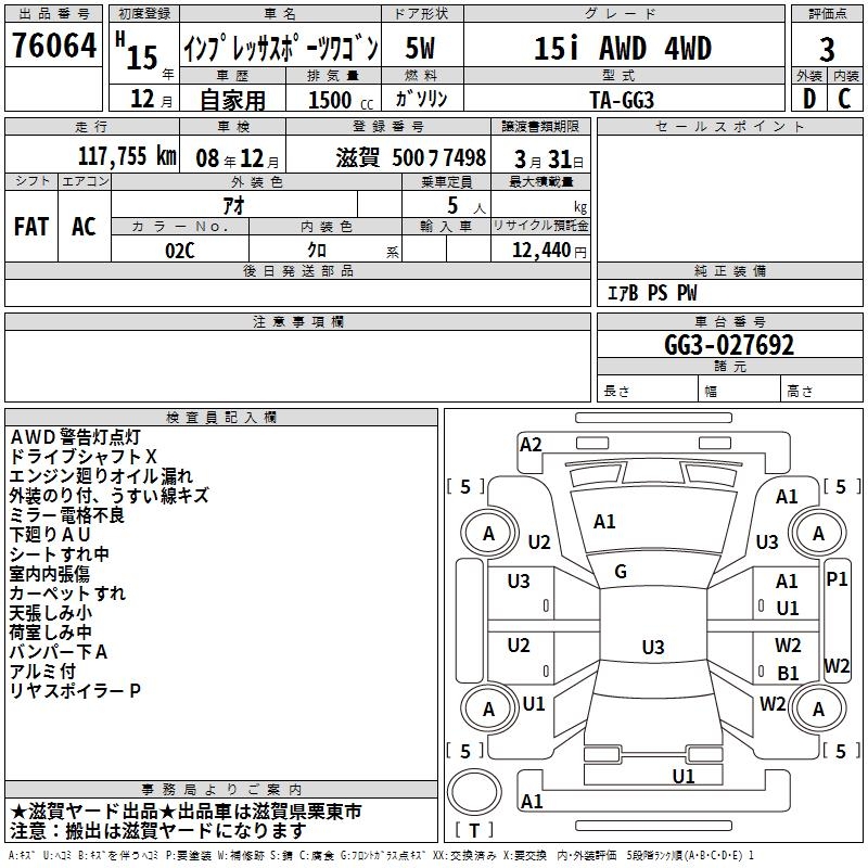 SUBARU IMPREZA SPORT WAGON - лот 76064