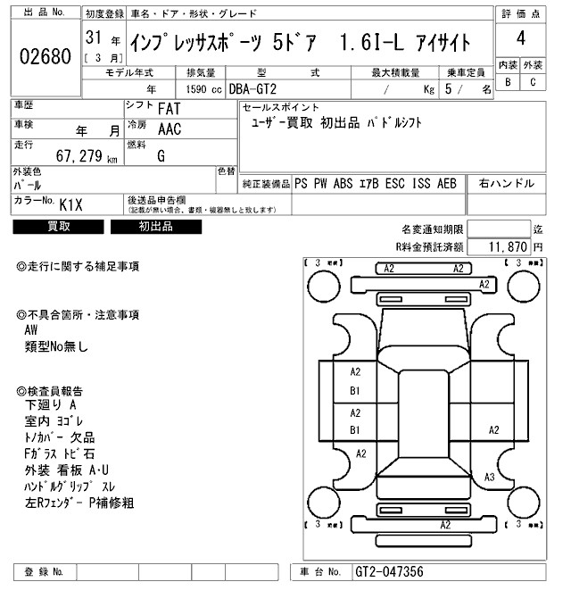 SUBARU IMPREZA SPORT - лот 2680