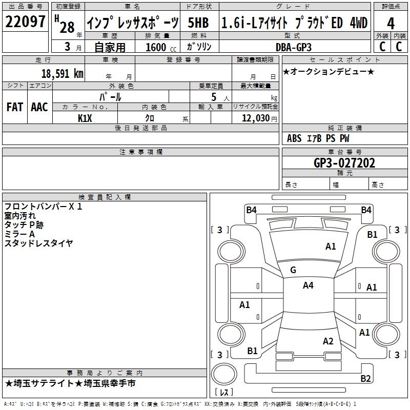 Все аукционы SUBARU IMPREZA SPORT