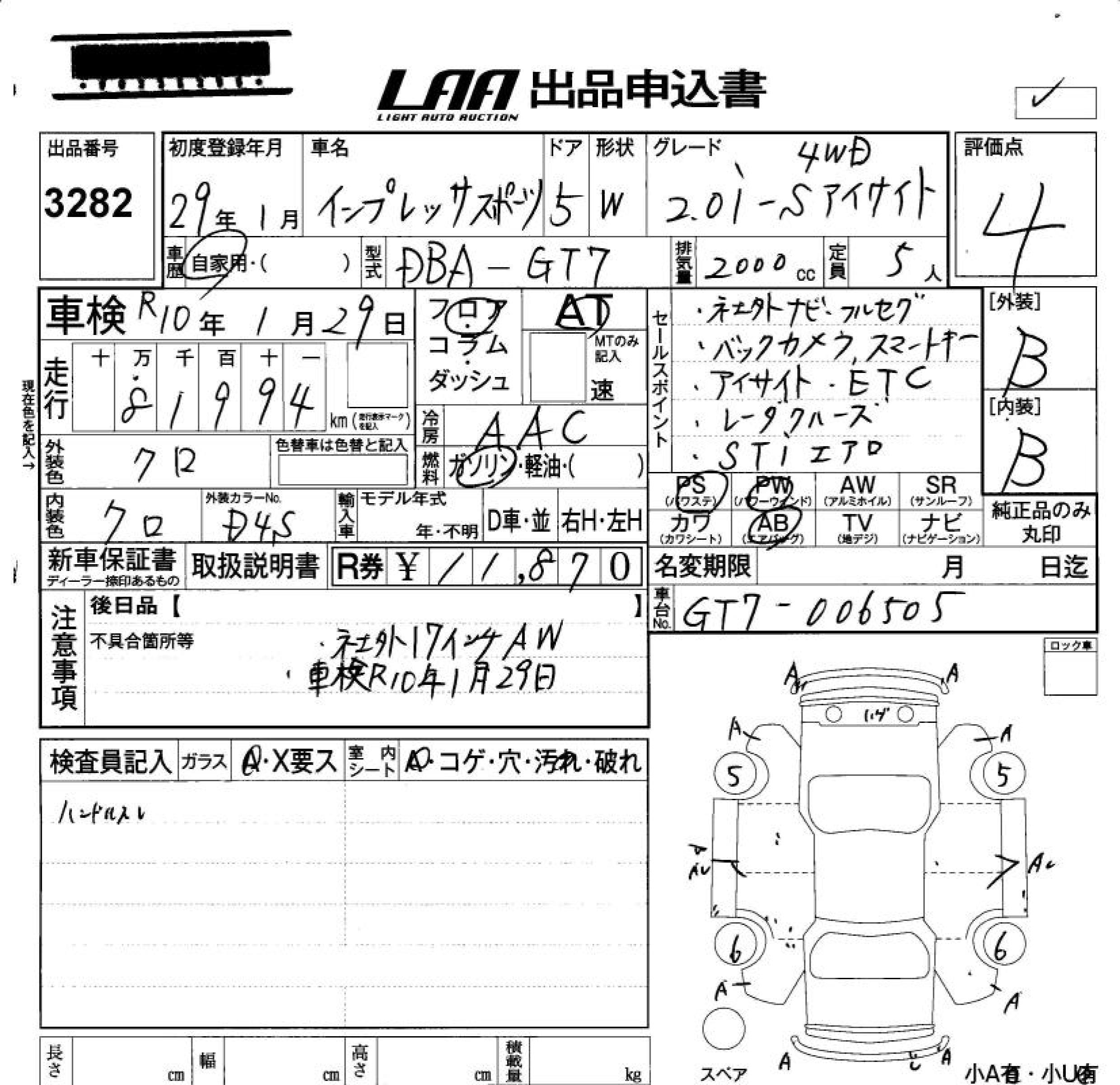 SUBARU IMPREZA SPORT - лот 3282