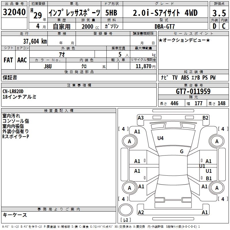 SUBARU IMPREZA SPORT - лот 32040