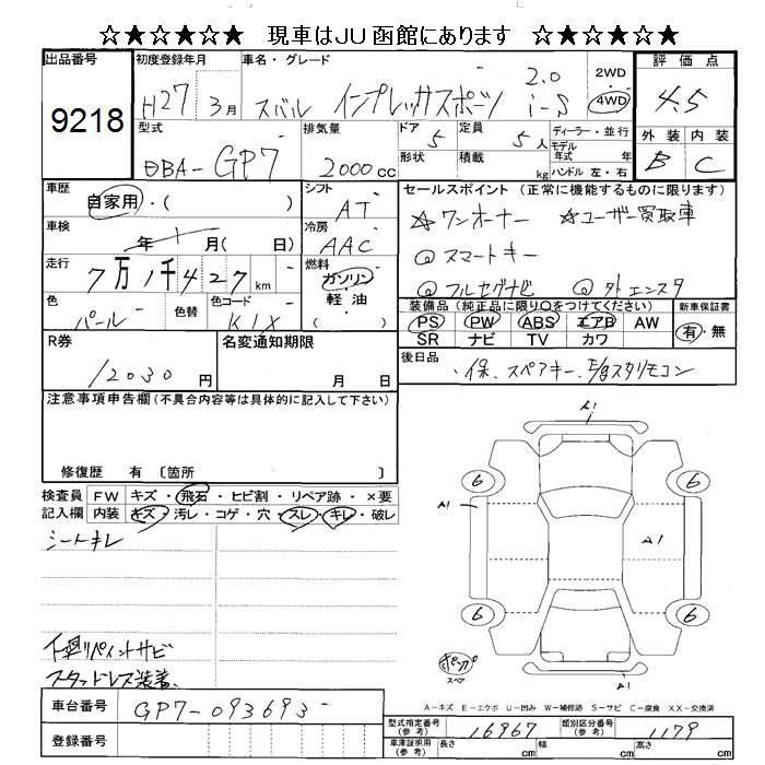 Все аукционы SUBARU IMPREZA SPORT