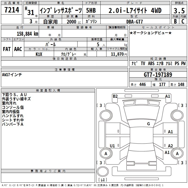 SUBARU IMPREZA SPORT - лот 7214