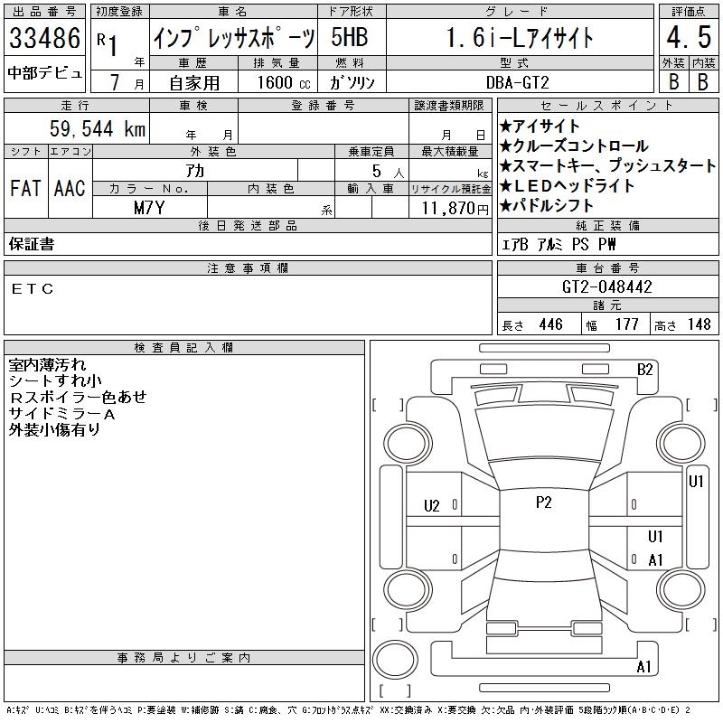 Все аукционы SUBARU IMPREZA SPORT