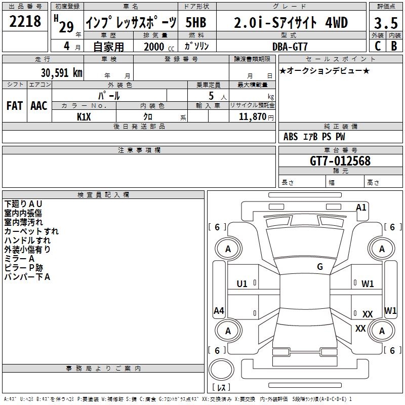 Все аукционы SUBARU IMPREZA SPORT