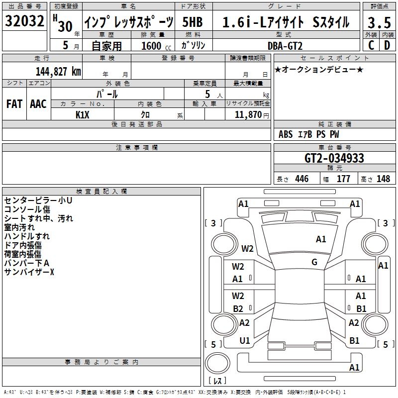 SUBARU IMPREZA SPORT - лот 32032