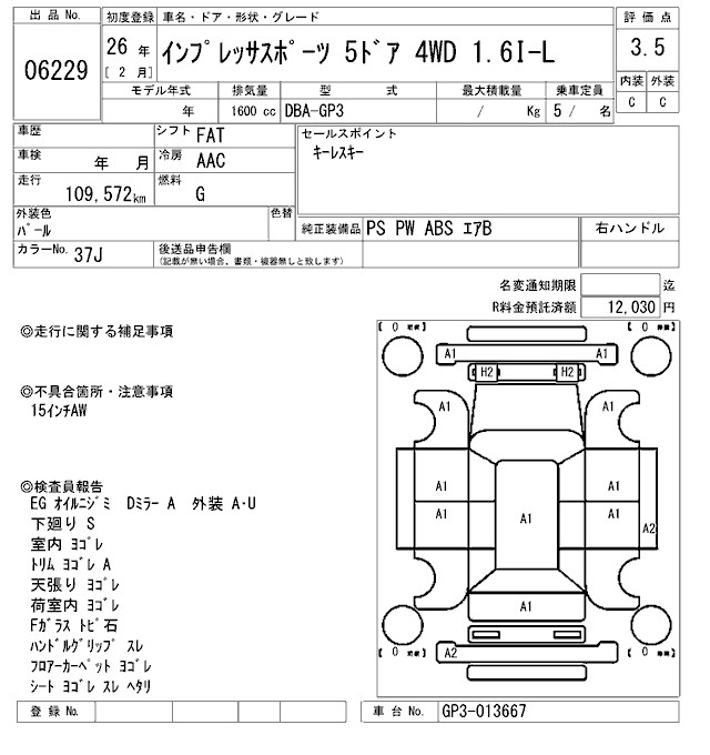SUBARU IMPREZA SPORT - лот 6229