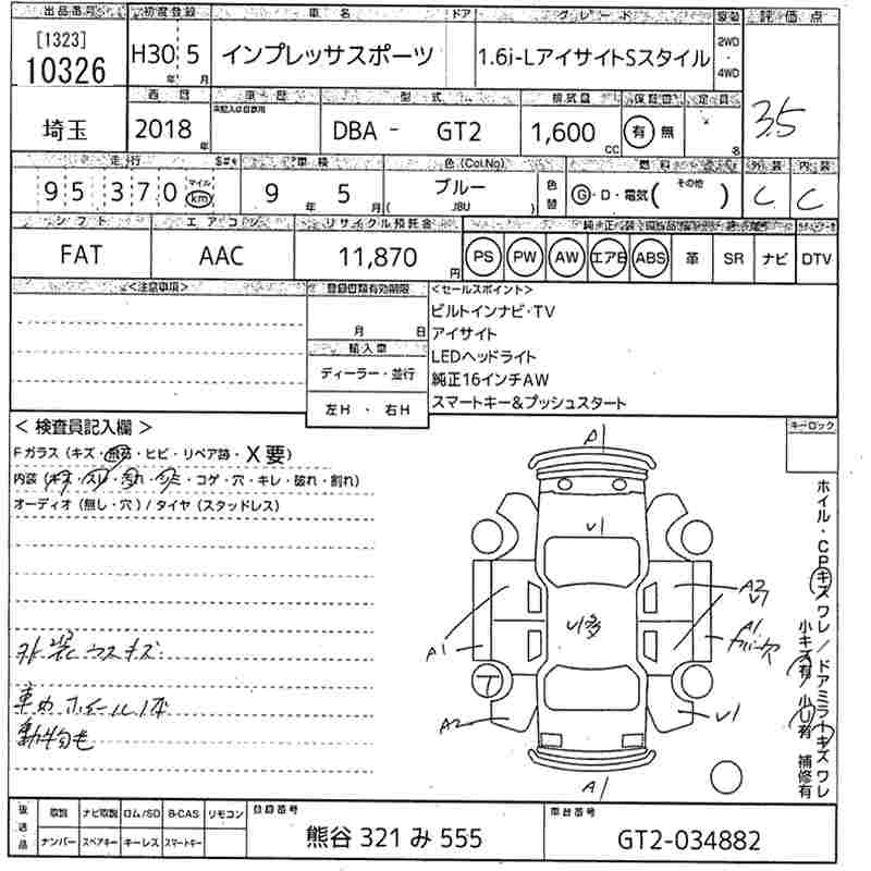 Все аукционы SUBARU IMPREZA SPORT