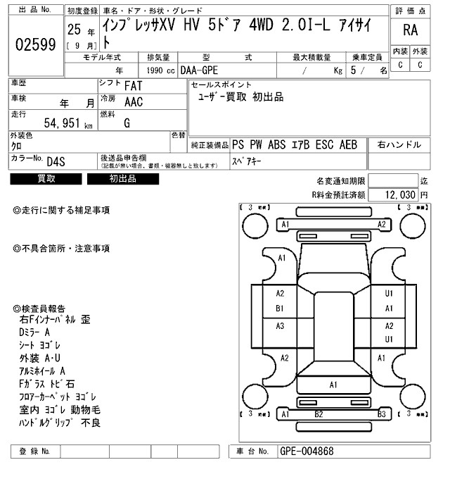 SUBARU IMPREZA XV - лот 2599