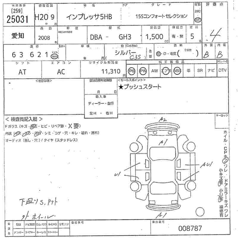 SUBARU IMPREZA 5HB IMPREZA 5HB15S COMFORT SELECTION - лот 25031