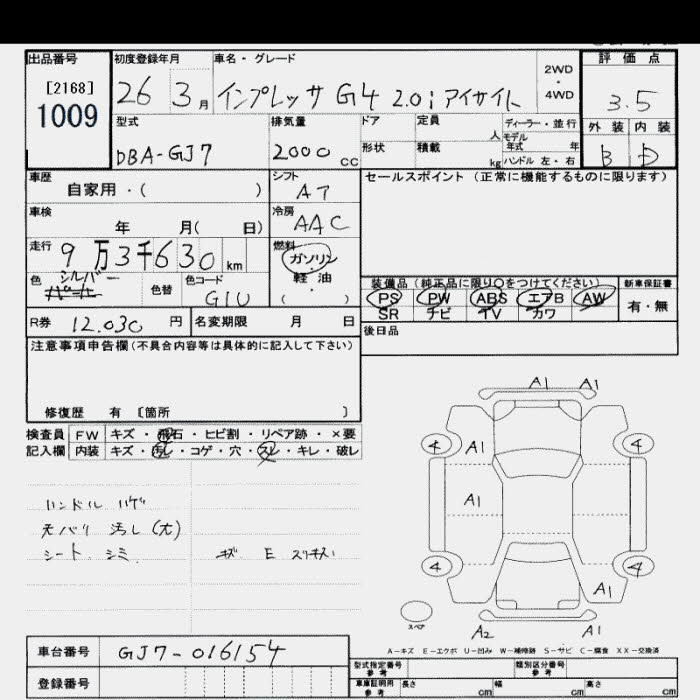 SUBARU IMPREZA G4 2.0I EYESIGHT - лот 1009