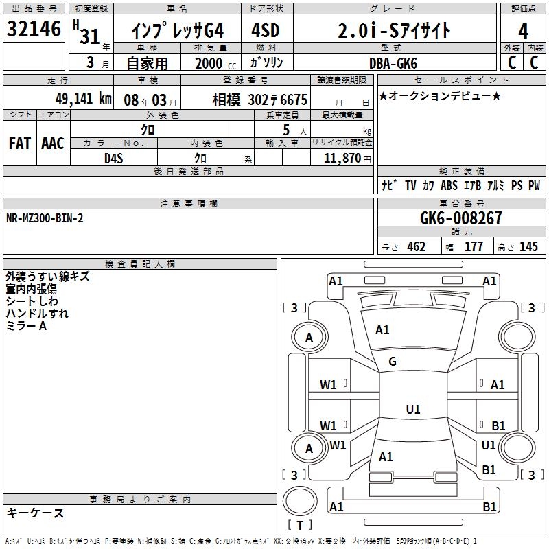 SUBARU IMPREZA G4 2.0I-S EYESIGHT - лот 32146