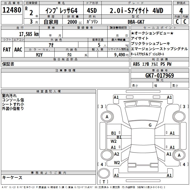 SUBARU IMPREZA G4 2.0I-S EYESIGHT 4WD - лот 12480