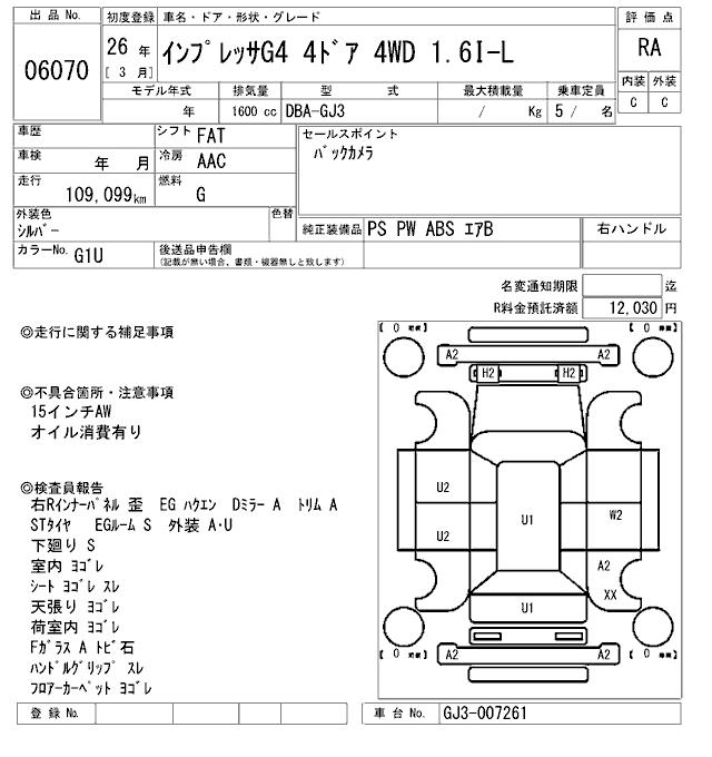 SUBARU IMPREZA G4 1.6I-L - лот 6070