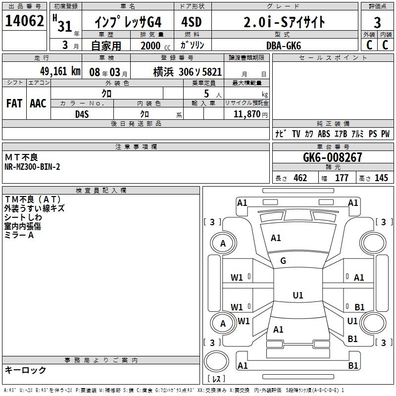 SUBARU IMPREZA G4 2.0I-S EYESIGHT - лот 14062