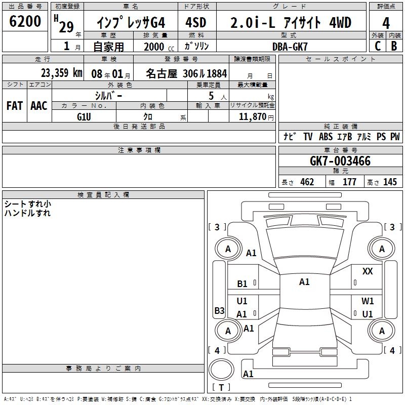 SUBARU IMPREZA G4 2.0I-L EYESIGHT 4WD - лот 6200