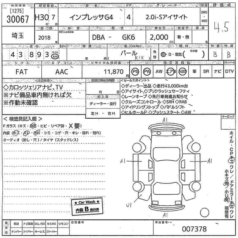SUBARU IMPREZA G4 2.0I-S EYESIGHT - лот 30067
