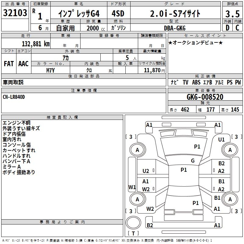 SUBARU IMPREZA G4 2.0I-S EYESIGHT - лот 32103