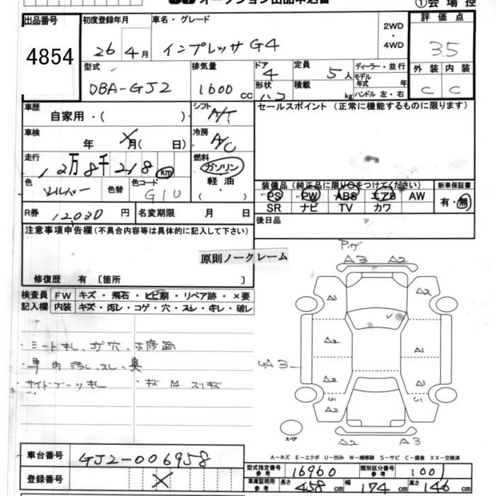 SUBARU IMPREZA G4 - лот 4854