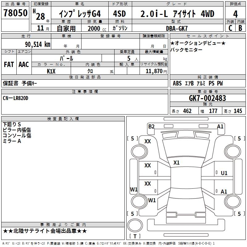 SUBARU IMPREZA G4 2.0I-L EYESIGHT 4WD - лот 78050