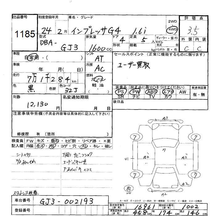 Все аукционы SUBARU IMPREZA G4