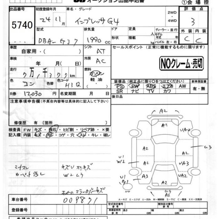 SUBARU IMPREZA G4 - лот 5740