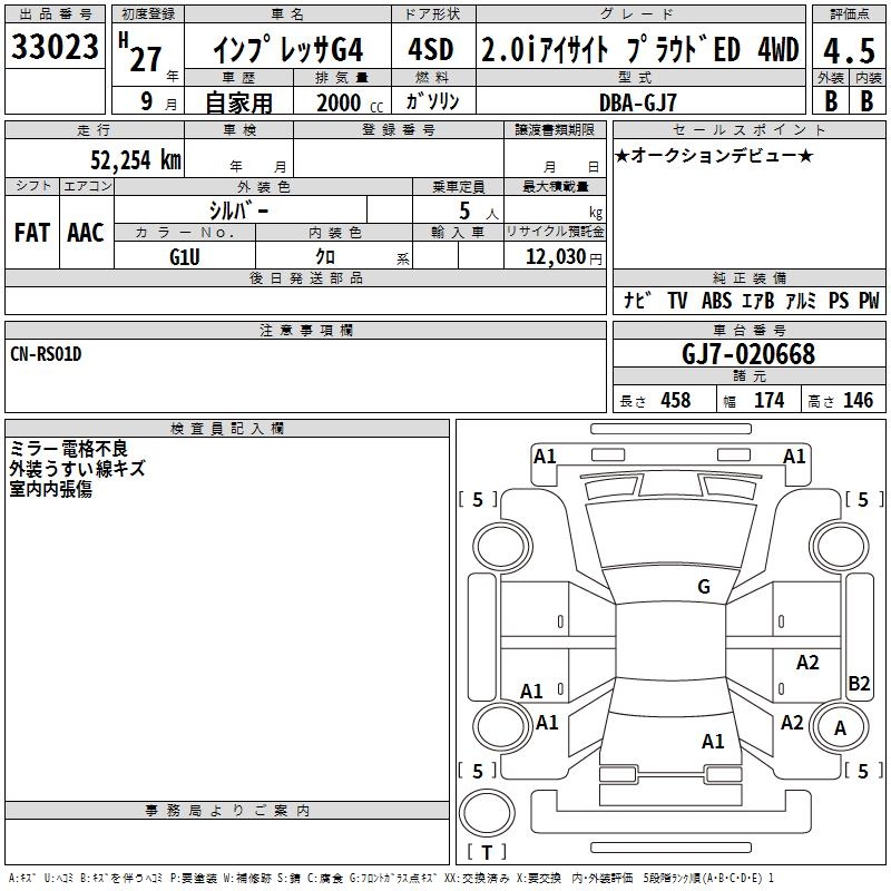 SUBARU IMPREZA G4 2.0I EYESIGHT PRA UDO4WD - лот 33023