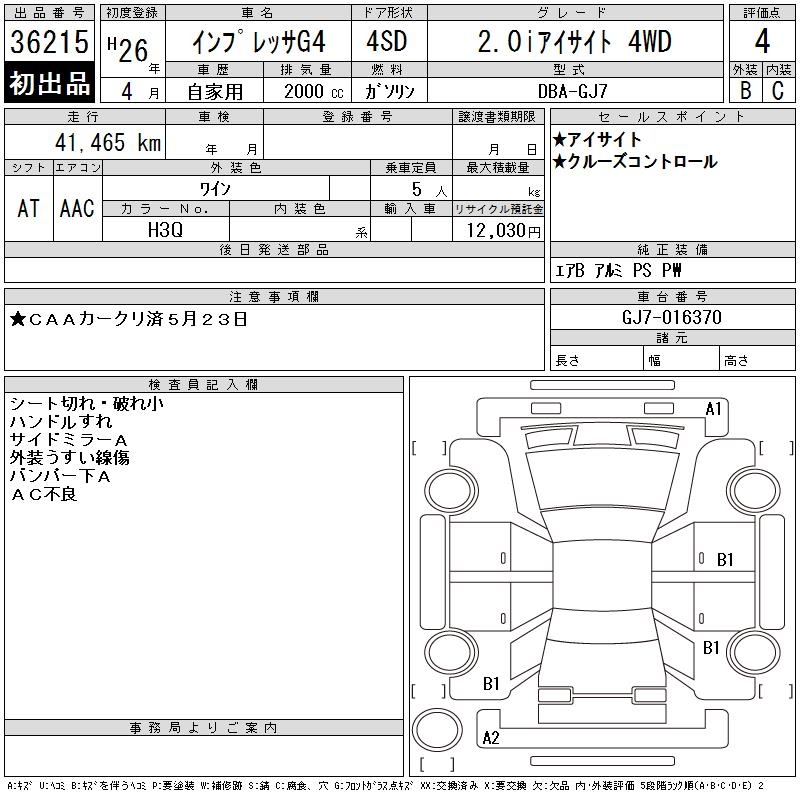SUBARU IMPREZA G4 2.0I EYESIGHT 4WD - лот 36215
