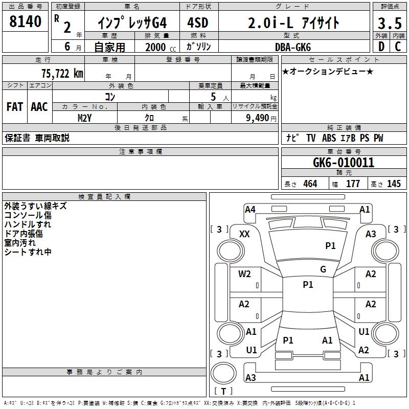 SUBARU IMPREZA G4 2.0I-L EYESIGHT - лот 8140