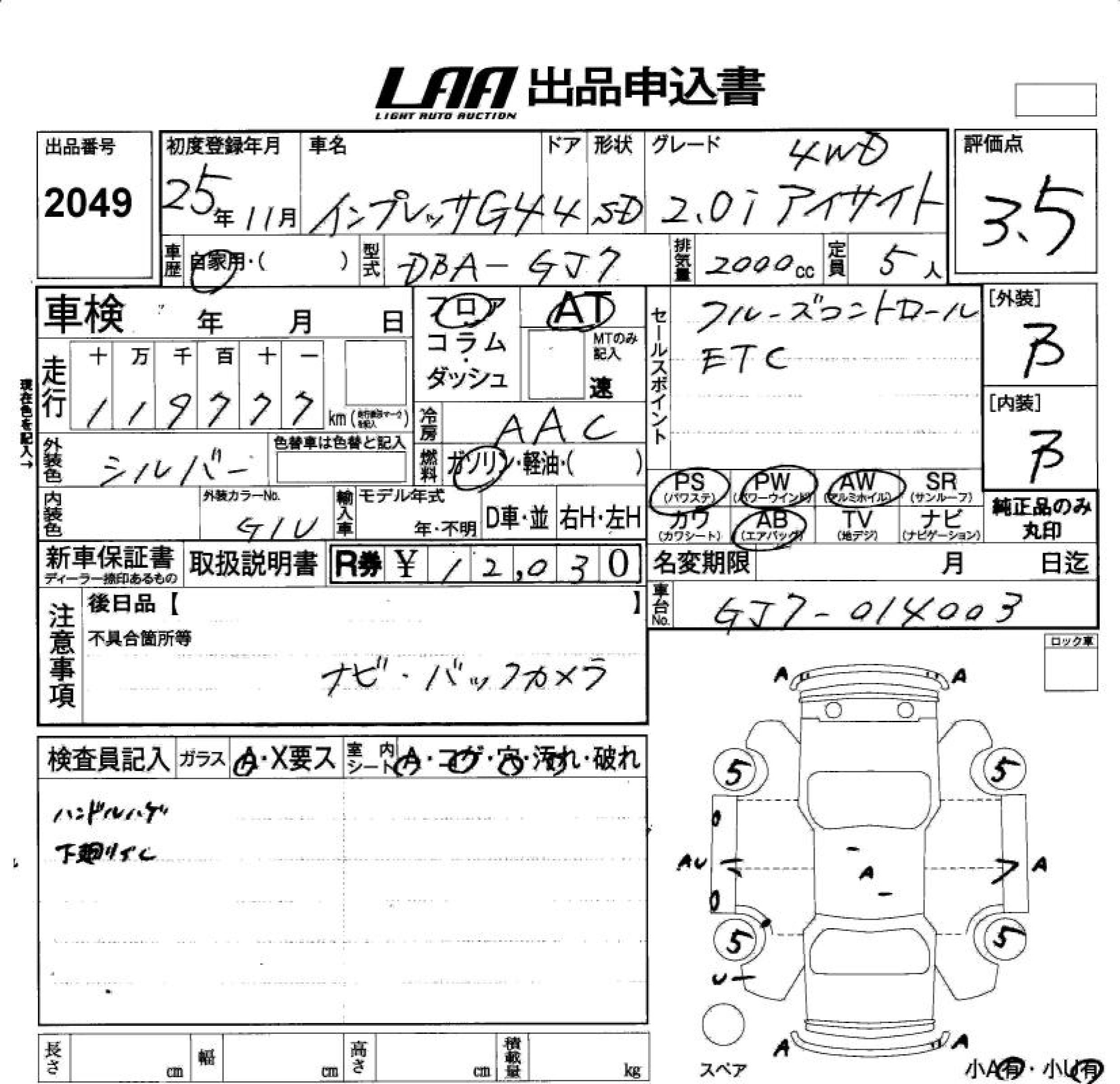 SUBARU IMPREZA G4 2.0I EYESIGHT 4WD - лот 2049