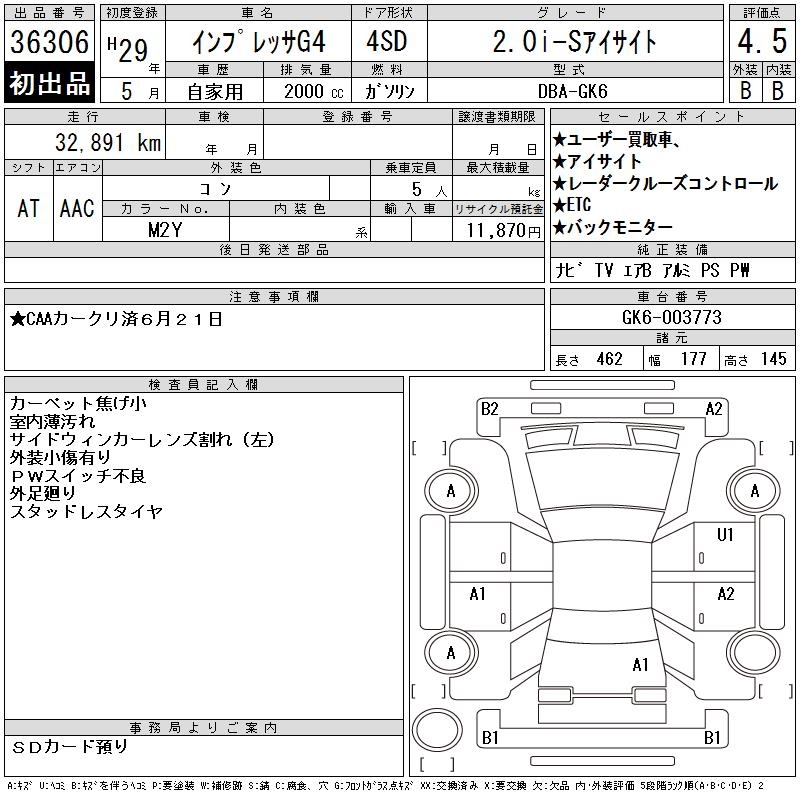 SUBARU IMPREZA G4 2.0I-S EYESIGHT - лот 36306