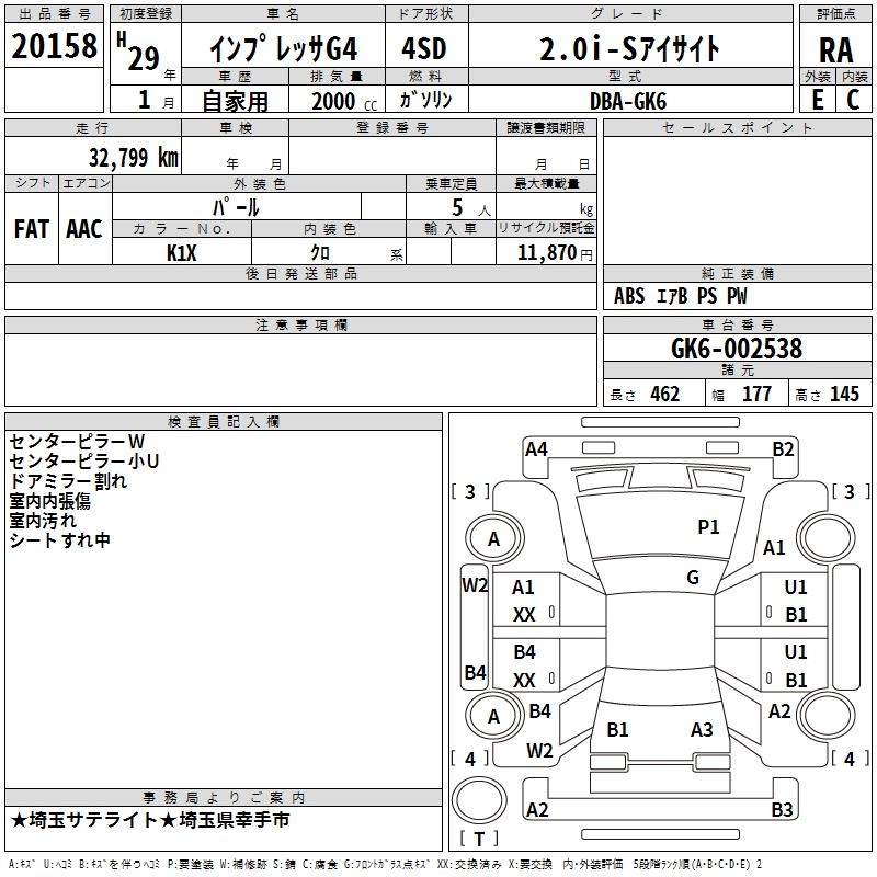 SUBARU IMPREZA G4 2.0I-S EYESIGHT - лот 20158