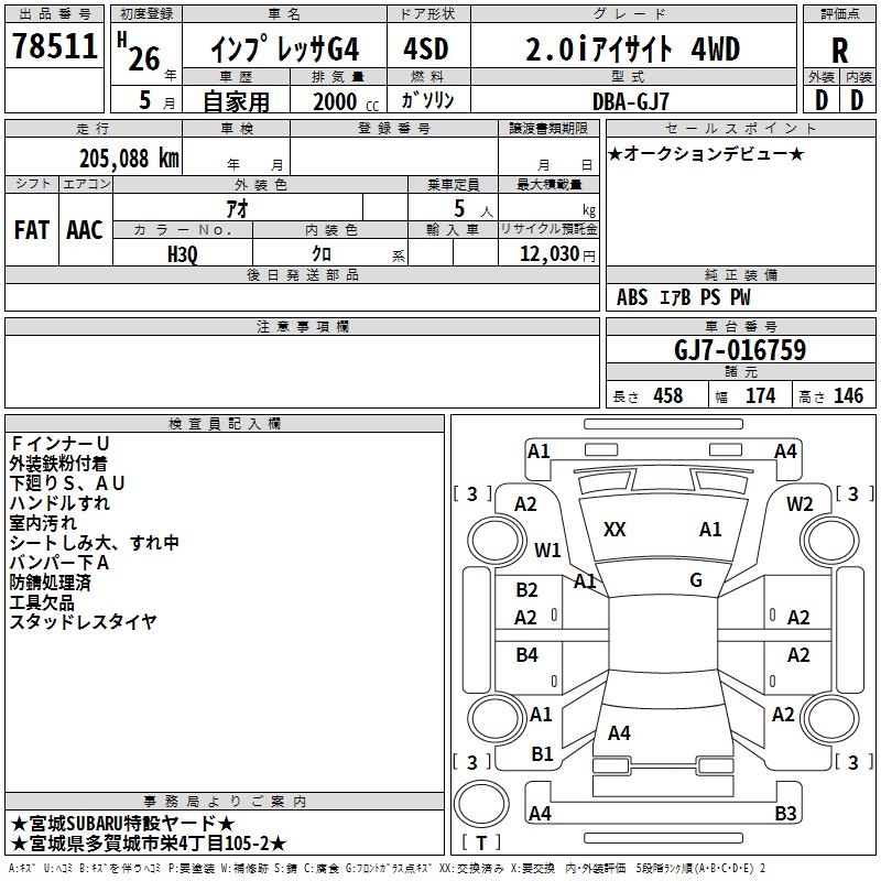 Все аукционы SUBARU IMPREZA G4