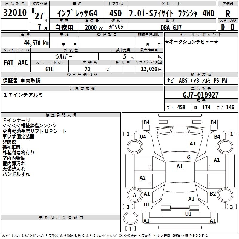 SUBARU IMPREZA G4 2.0IS EYESIGHT WELLFARE CAR 4WD - лот 32010